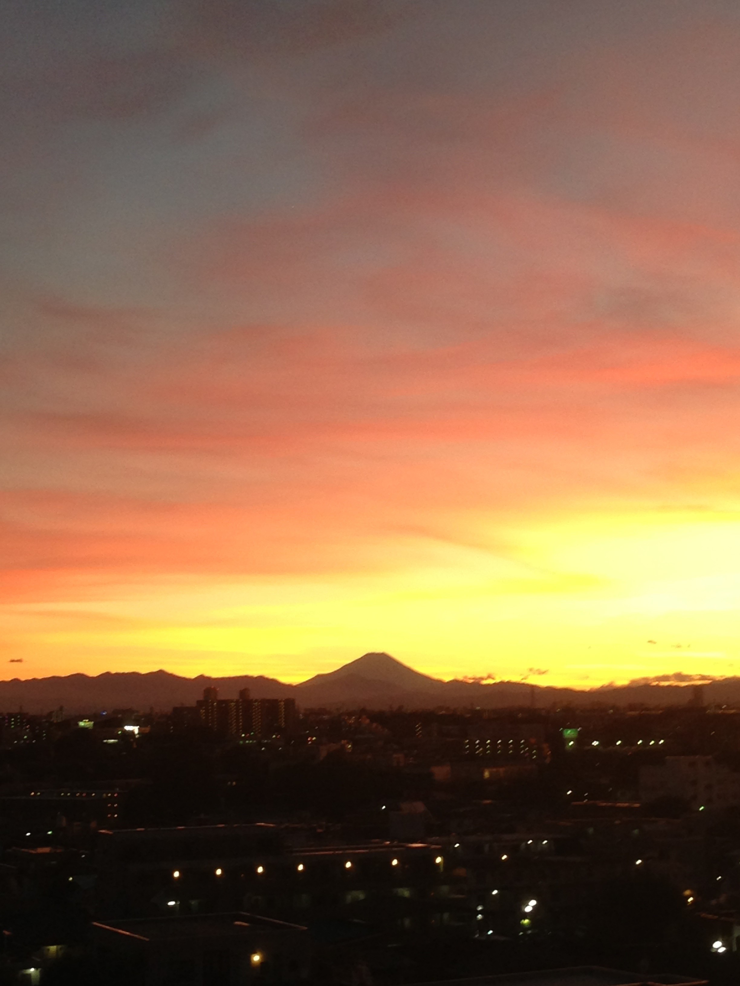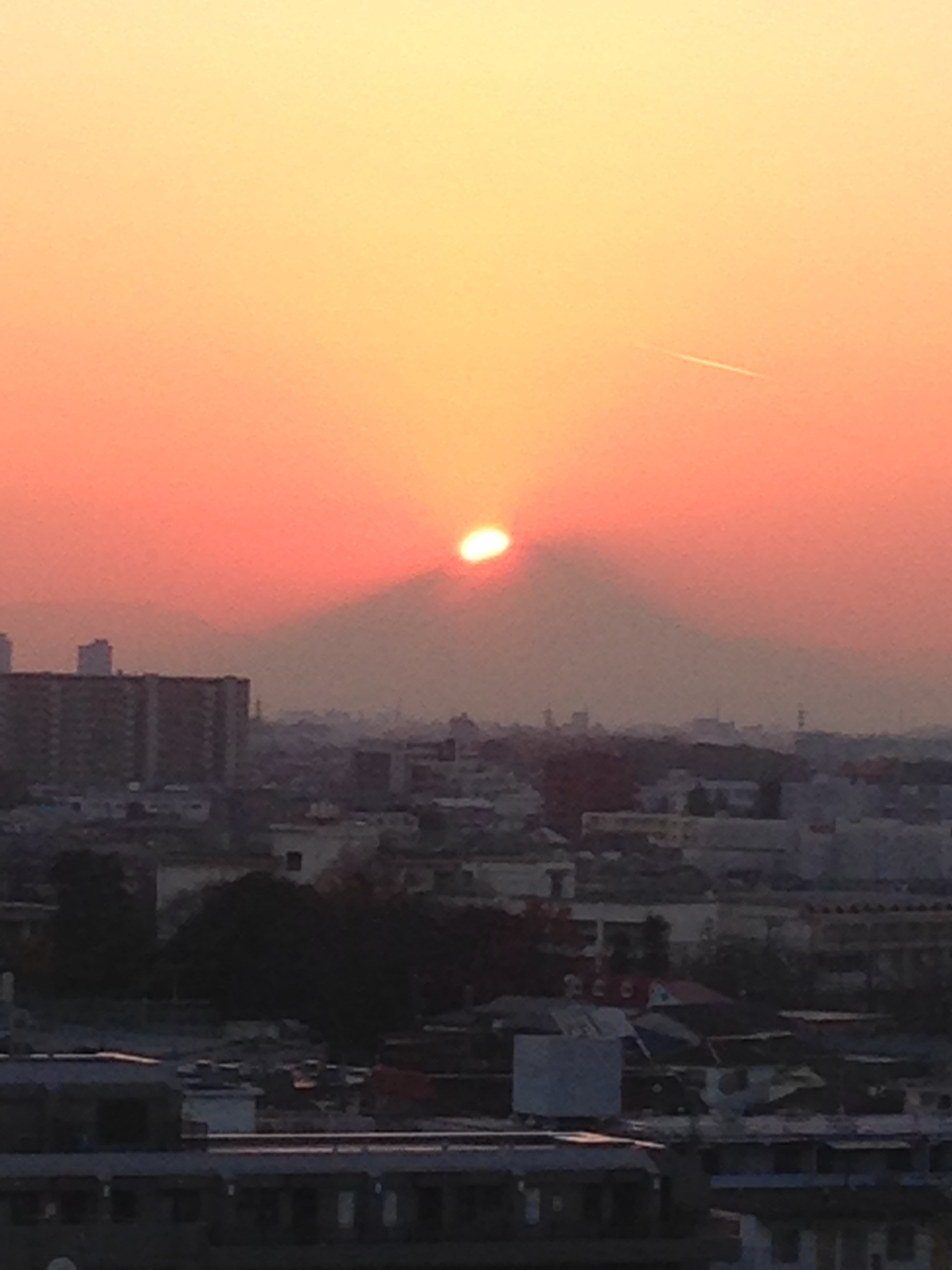 冬の良く晴れた日に、朝焼け・夕焼けを見ることも楽しみの一つです。刻一刻と移り変わる空の色を眺めているのは、なんとも言えない至福の時です。我が家からも良く晴れた日には、富士山と綺麗な夕焼けが見えます。年に1日だけ、その日が好天に恵まれれば、ダイヤモンド富士も見ることも出来ます。写真は少しタイミングを逃してしまっていますが、去年撮ったものです。今年こそは絶好のタイミングで撮りたいと思っているところです。(7期生:川見治子)