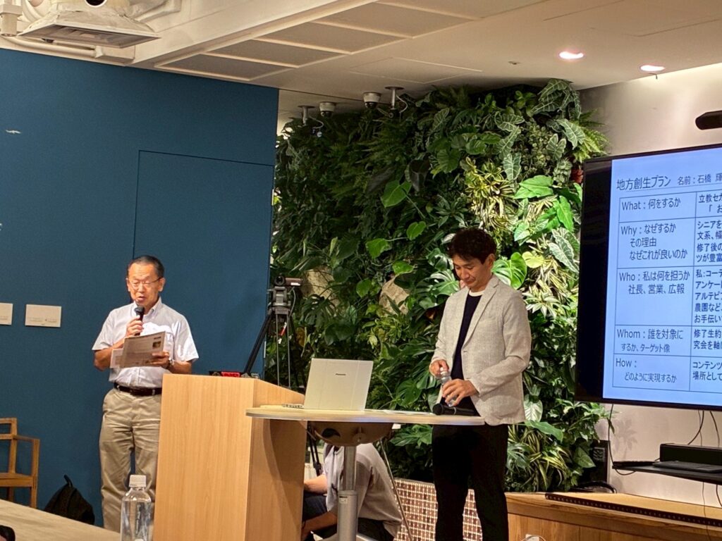 当研究会メンバーの石橋輝昭さん(17期生)もFWに参加し、立教セカンドステージとして今までの知見も活かし、また、美唄に実際に行っからわかる魅了を踏まえ、おてつ旅プロジェクトということで、立教セカンドステージ修了生を対象として美唄の魅力ある簡単な仕事をセットした旅を企画運営するという魅力ある提案を発表を行い、桜井市長より「RSSCの皆さんが美唄市の多くの体験を持ち帰り、応援団として活躍してほしい」との講評をいただきました。