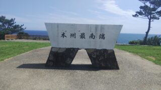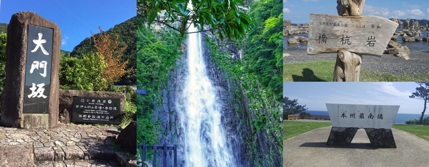 「くしもと大橋」を渡って紀伊大島では日本最古の石造灯台樫野埼灯台を眺め、トルコ記念館、日米修好記念館などを運転手さんの説明を聞きながら通過して、本州最南端の地潮岬で昼食休憩、涼しい休憩所で海をみながらゆったりした。妻は相当疲れてるようだが、ゆっくりしながら楽しめている様子が嬉しい。運転手さんの説明も、愉快なのもいい感じだ。(7期生 堀崎 剛)