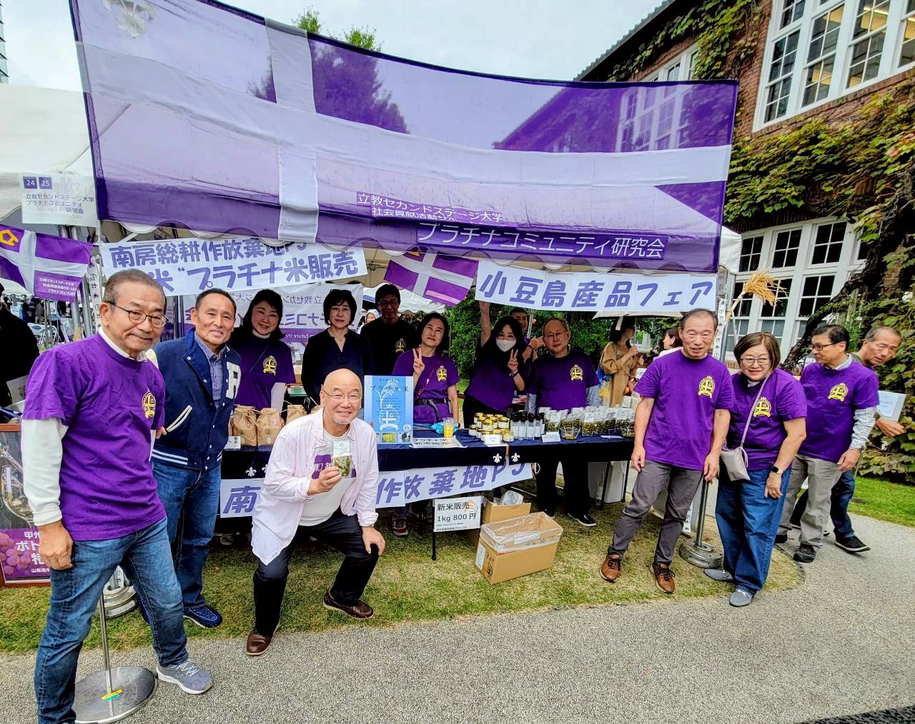 プラチナコミュニティ研究会(プラチナ研)では、恒例の物産展(オープンマーケット)を開催。今年も甲州市勝沼から直送の芳醇な香りのワイン、小豆島の豊かな恵みが詰まった風味豊かなオリーブ関連製品、そして南房総市の耕作放棄地を再生して生まれた新米「プラチナ米」など、どれも生産者とプラチナ研メンバーの想いが込められた逸品が並びました。