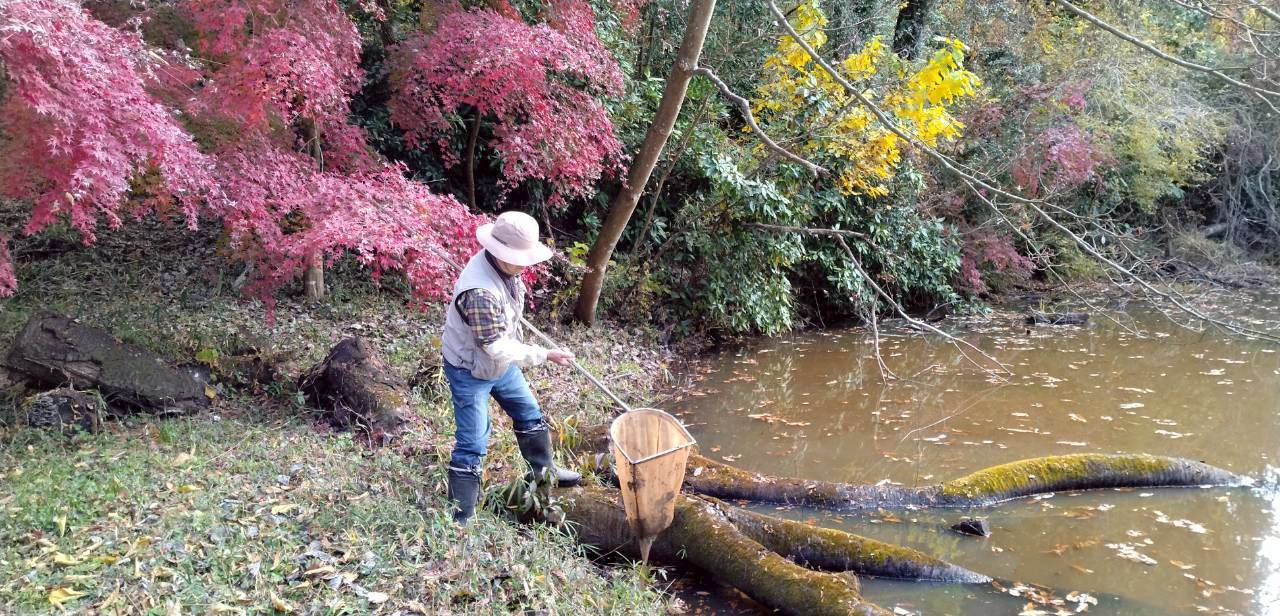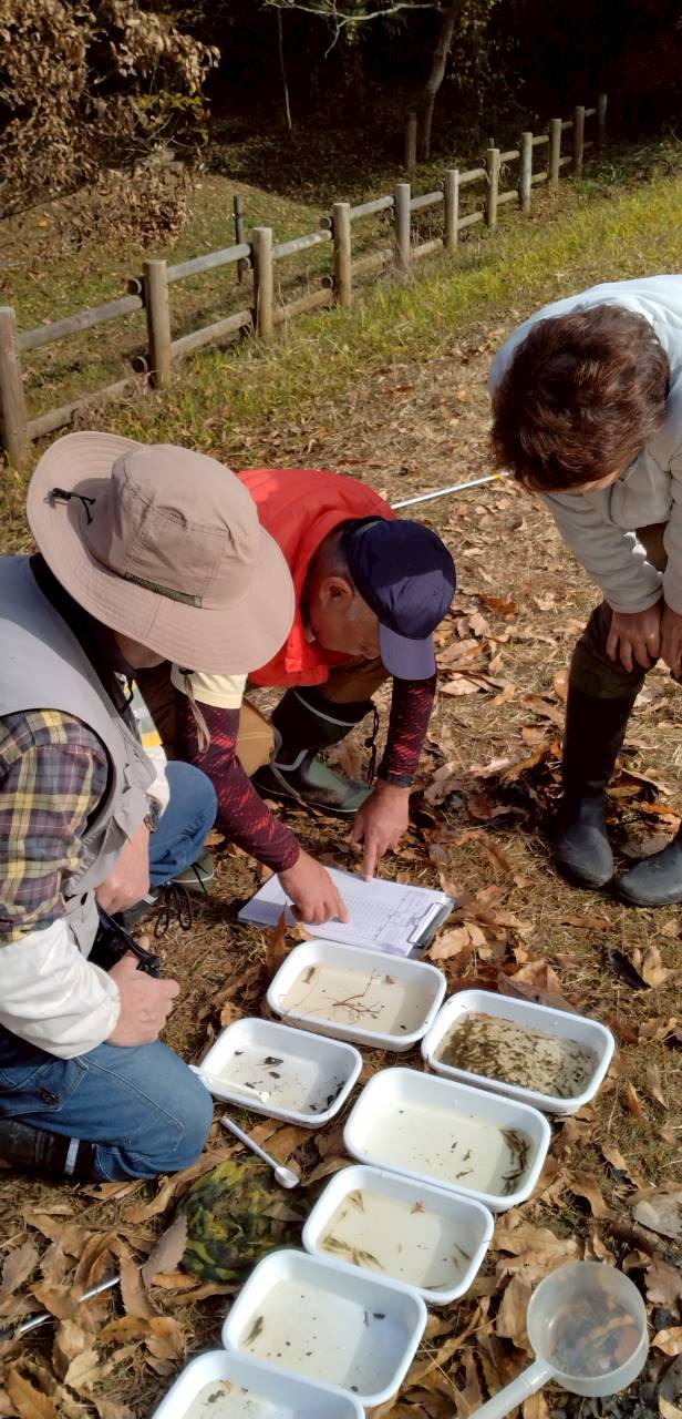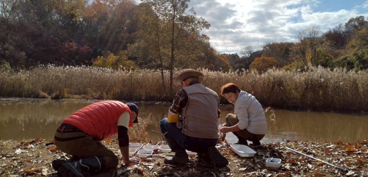 2025年11月29日、市民モニタリングの第6回「秋の調査」を永石文明先生と共に秋色の森に包まれたさいたま緑の森博物館で実施しました。雨の少ない状況が続き、小川の水量が減少していたため、予定していた「案内所近くのため池+小川」の二地点調査から、ため池のみでの調査へと変更して行いました。