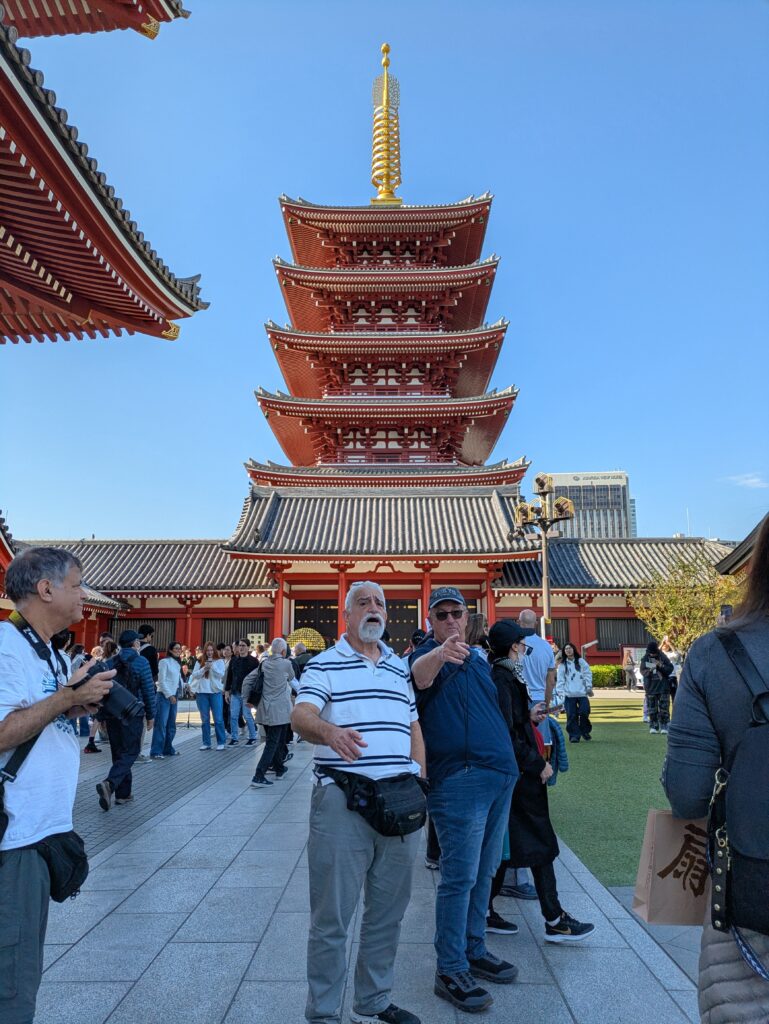 その後、「三社祭り」で有名な浅草神社、浅草寺のシンボルタワー高さ48Mの五重塔、樹齢800年の大イチョウなどを見て回った後、花屋敷や木馬館、浅草演芸ホールなどが近くにある、ヒノキを敷き詰めた木道の西参道商店街、昼間から酒飲みたちでにぎわうホッピー通り、江戸の町を再現した伝法院通りなどを楽しみました。