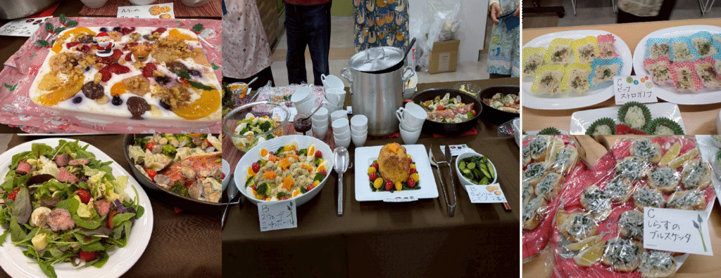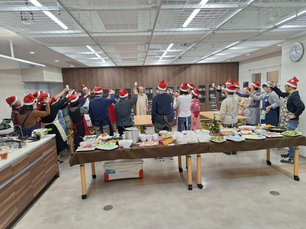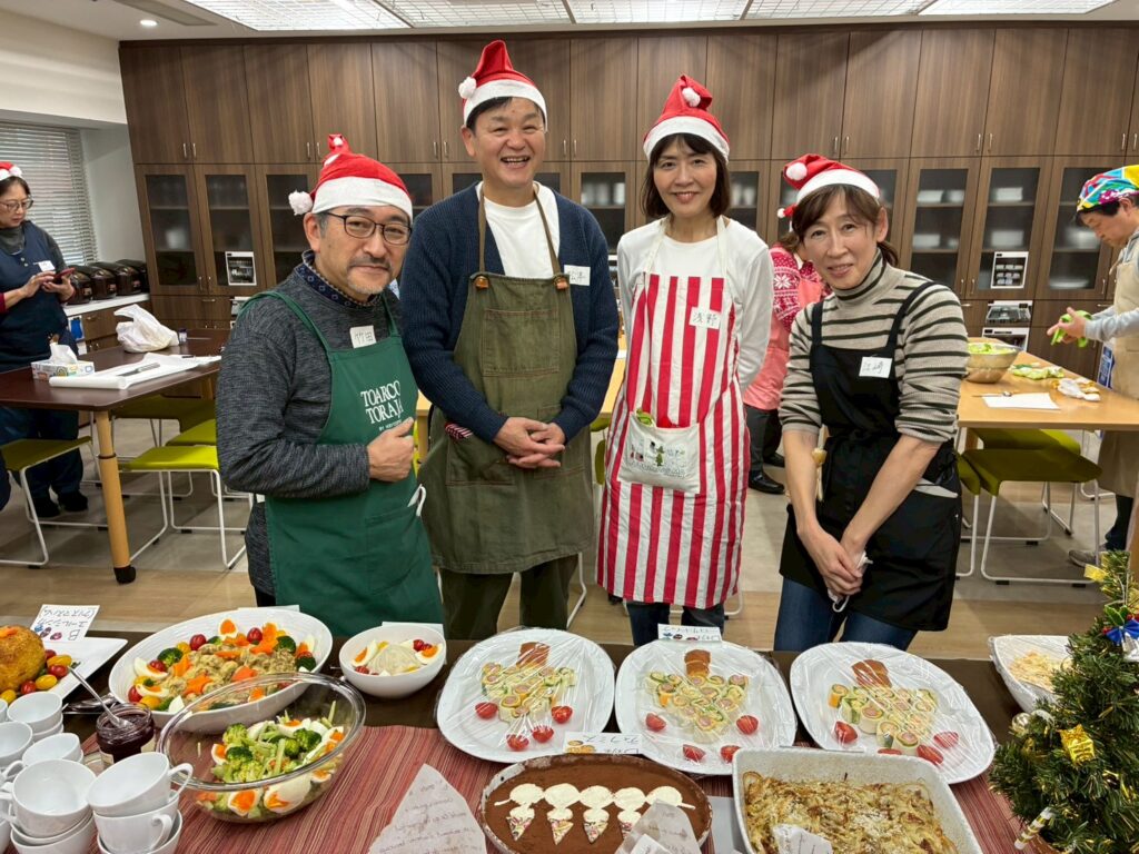 2025年12月21日、食と健康を考える料理同好会『Cook well(ククエル)』クリスマス特別企画、『世界のクリスマス料理を巡る旅』の模様を紹介させていただきます。今回はテーマ通り、全5チームが世界中の国のクリスマス料理を考案して披露するというまさに、“クリスマス料理の世界ツアー”のようなスペシャル企画でした。15期・16期・17期・18期のメンバーを中心に、松山先生やサポートスタッフも合わせて総勢20名超の参加者で、東京・池袋にある豊島区区民センターにて開催しました。