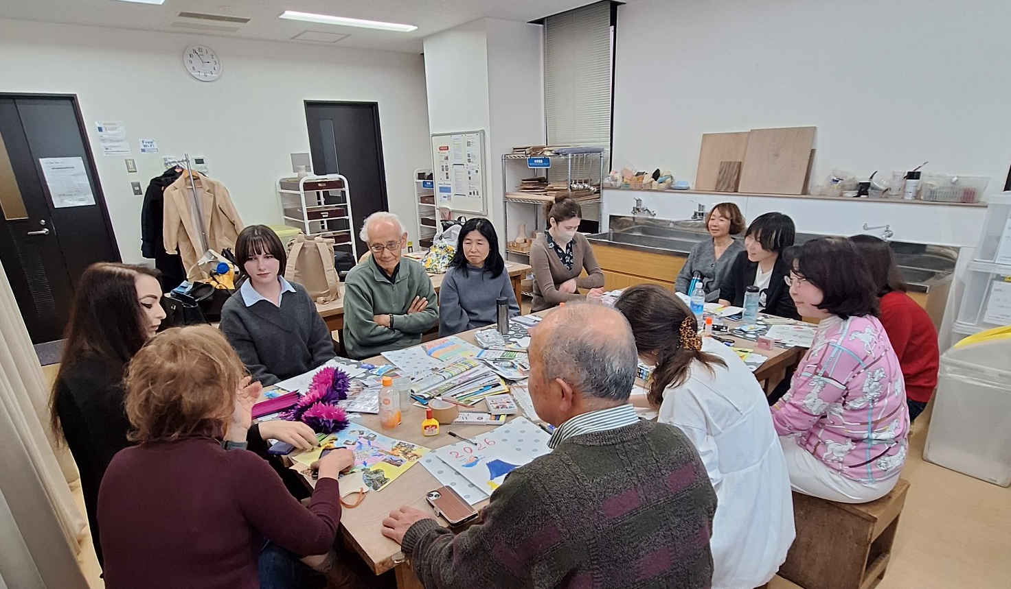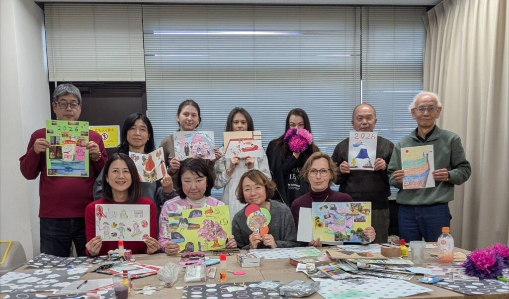 2026年1月18日に開催いたしました『第16回アートセラピー・ウクライナの皆さんとの交流会』の模様を紹介します。今回は日本の参加者8名、ウクライナの参加者5名、合計13名での開催となりました。今回は初参加のウクライナの人も多く、フレッシュでとても充実したアートセラピーの時間となりました。