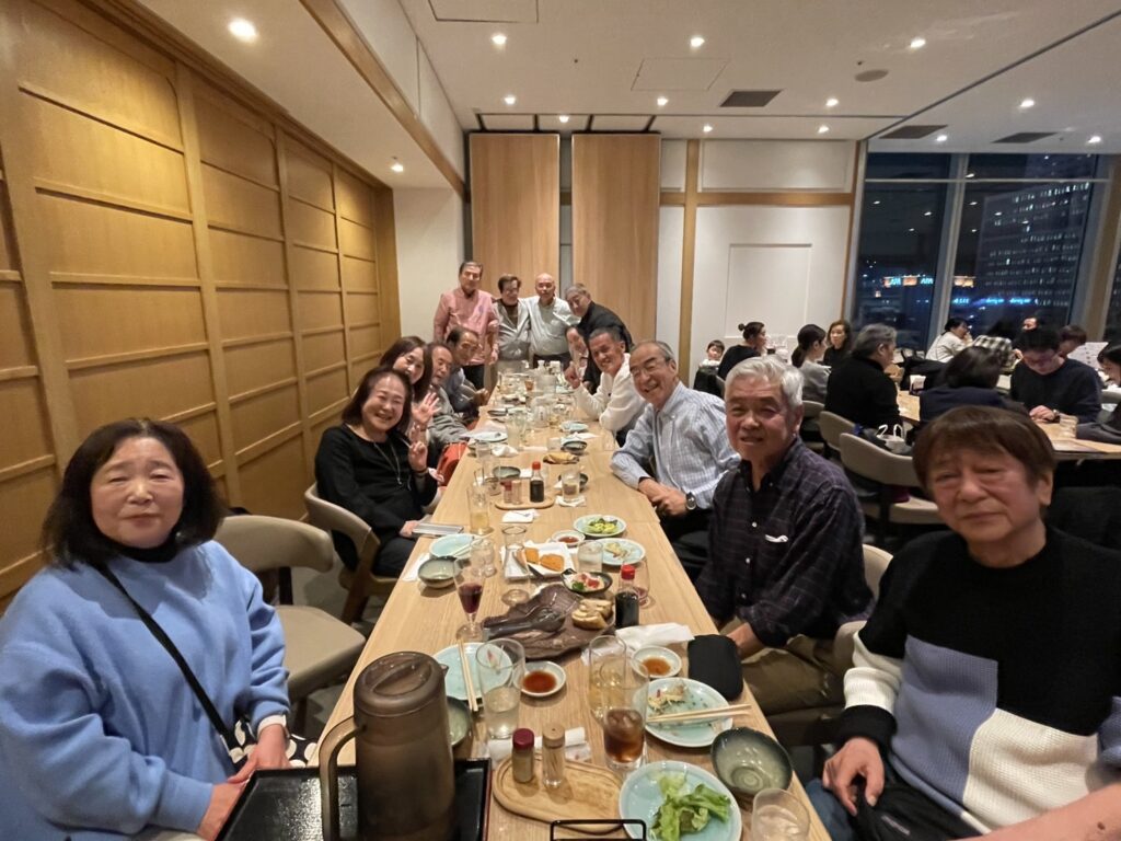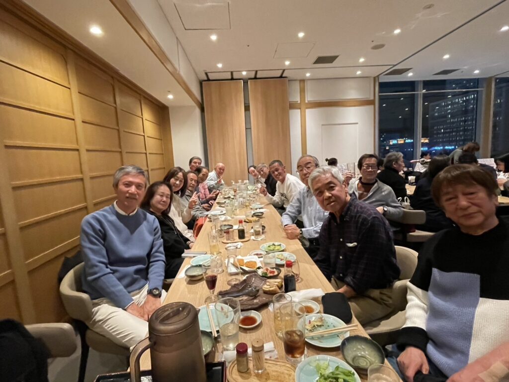 続いての懇親会は15名の参加を得て、9階の展望の良い会場で飲み放題つきのコスパの良い料理に舌づつみをうって親交をあたためました。途中で席替えしたりして笑い声の絶えない楽しい会と成り、次回の再会を期して締めの挨拶をもって2時間半の懇親会を散会しました。