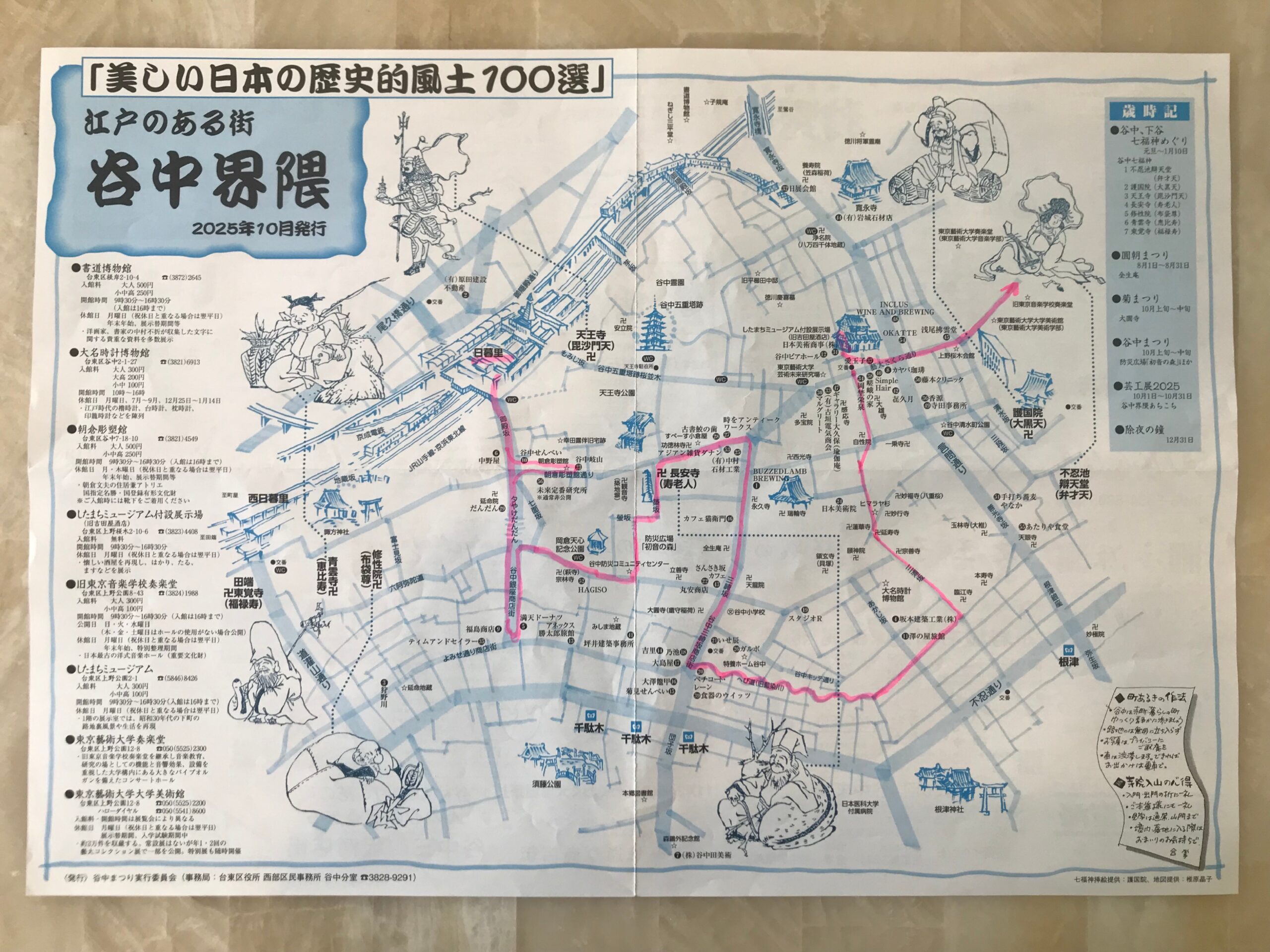 町中に200以上建立していると云われている立派な瓦屋根のお寺が立ち並ぶ坂道の多い道中で、谷中銀座やへび道を通り、日本画家アラン・ウェストさんのアトリエを経て上野公園からアメ横を歩いて3時間弱、15,000歩の旅でした。どこでも外国人の集団が眼につく下町風景でした。