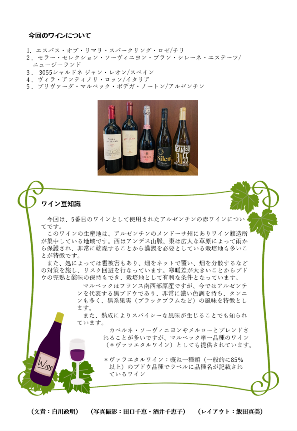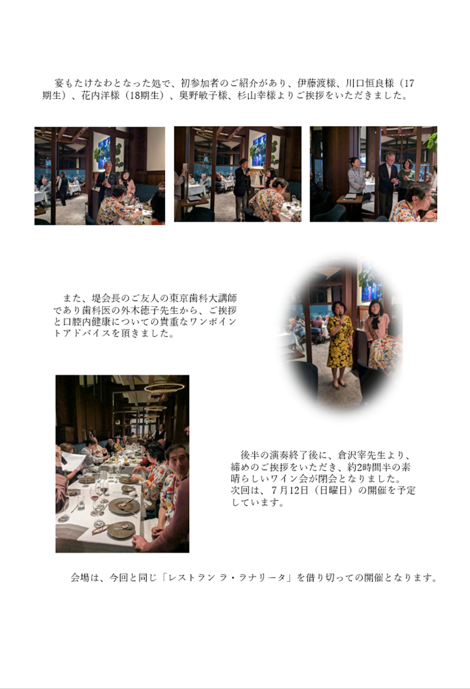 3. 【RSSCワイン同好会】「第69回世界のワイン巡り」                  春の宵、豪華ディナーを堪能しギターと三線のコラボを楽しむ!