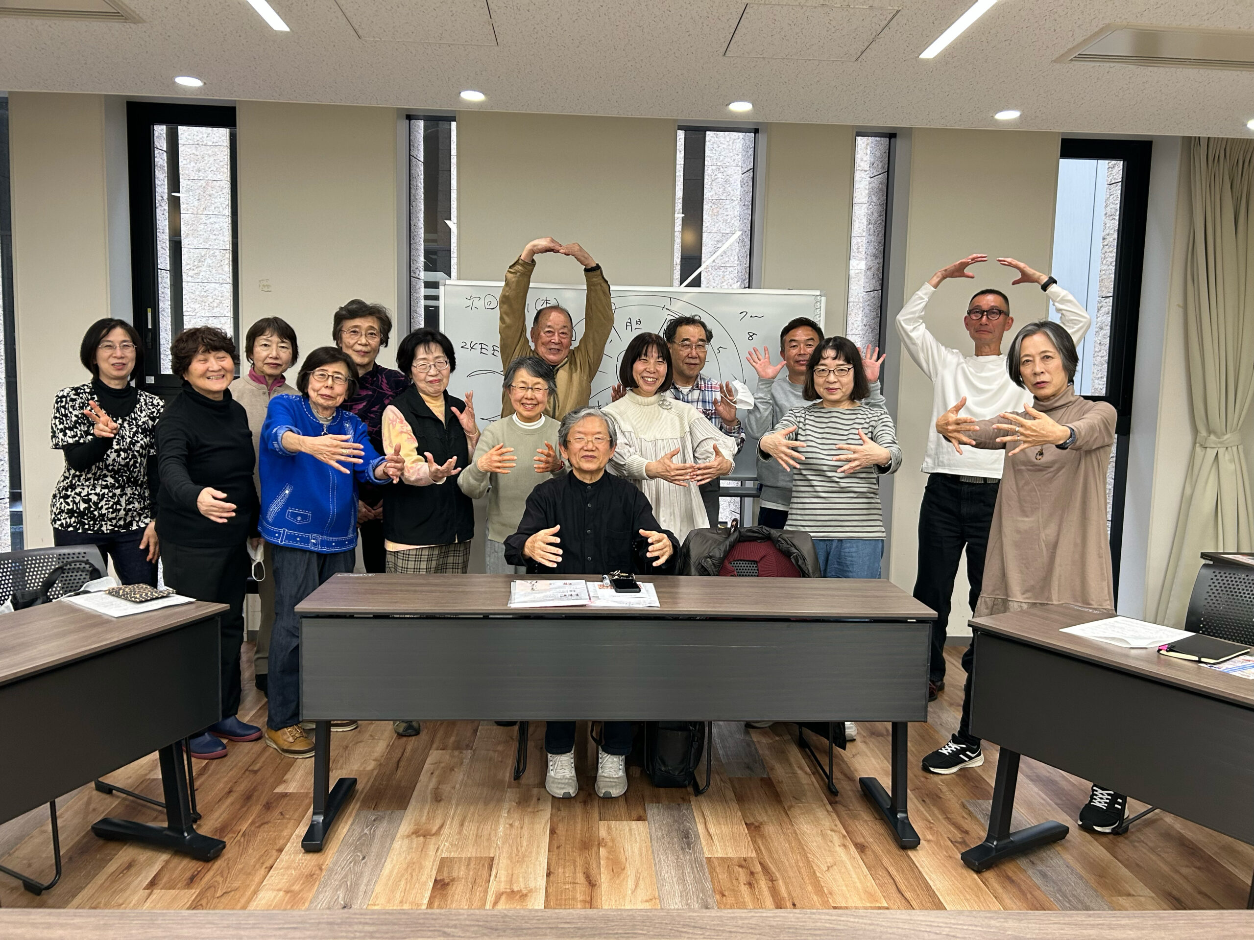 当日のデータ:場所・豊島区民センター/参加人員 18名/概要 冊子『気心への招待』の内容に沿った、掌さすり、中指もみ、百会の頭蓋骨はがし、浮足チェックなど/東洋医学の考えにある『子午流注』の図解に沿った解説など