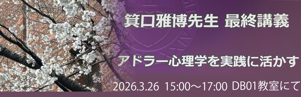 この最終講義を通して、身近な人や場に対して、自分にできる関わりを改めて考えるきっかけをいただきました。「人生の意味は、自分自身で与えるものだ」というアドラーの言葉を胸に、これからも小さな一歩を大切にしていきたいと思います。
