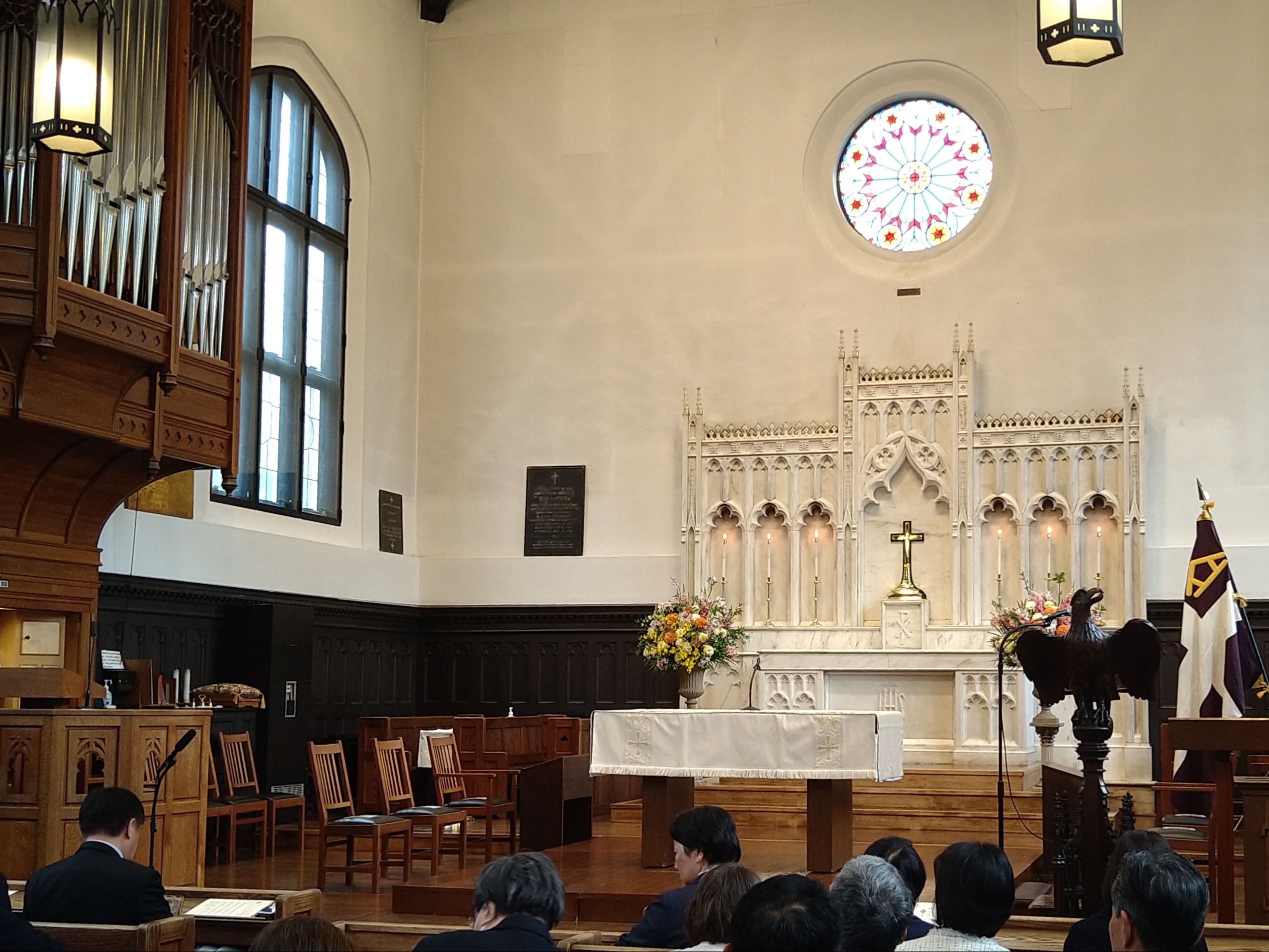 式は水上徹男副学長の司会で始まり、パイプオルガンの響きに包まれながら、参列者全員で聖歌482番を斉唱しました。続いて、チャプレンや黒いガウンに身を包んだ先生方が入場され、西原廉太総長の訓示、広田勝一チャプレン長の祝祷が行われました。受講生の皆さんは、これから始まる学びの日々に胸を高鳴らせていたことでしょう。