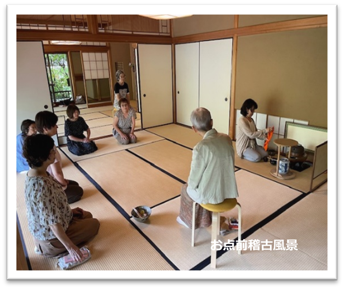 稽古は月に一回ですが、それ故に皆さまにとっては貴重な時間であり、茶室の中で懸命に習う姿には私ならずとも感動するのではないでしょうか。皆さまのその姿は私にとって自慢でもあり励みでもあります。